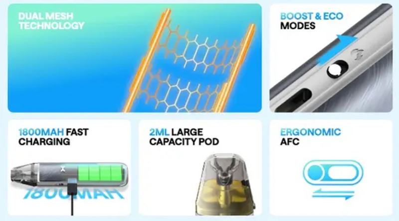 The OXVA Nexlim Go Vape Pod Kit is a compact and user-friendly device, perfect for MTL vaping. Powered by a built-in 1800mAh battery, it delivers long-lasting performance for all-day use. When recharging is needed, the Type-C charging port (cable sold separately) provides quick and efficient charging. Each kit comes with a Nexlim 0.8ohm pod, designed to produce smooth vapour and rich flavour, ideal for use with both nicotine salt and standard e-liquids. Lightweight and stylish, the OXVA Nexlim Go offers a simple yet satisfying vaping experience for vapers of all experience levels.